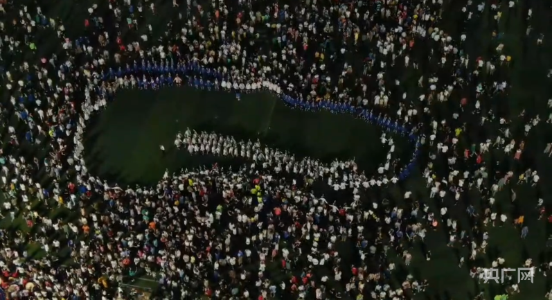 舞者与现场观众在足球场上跳起民族风情舞蹈(央广网发 榕江县融媒体中心供图)