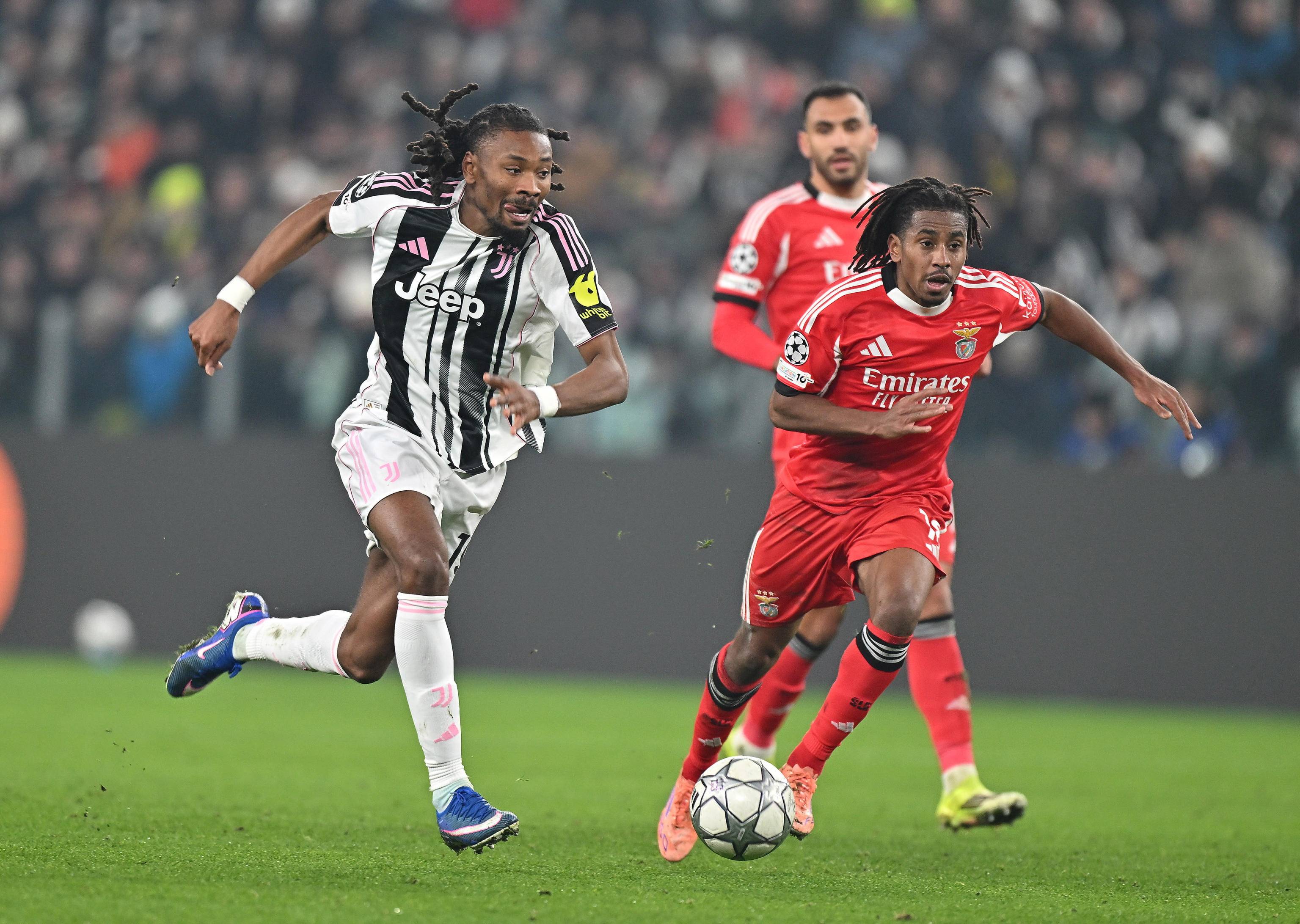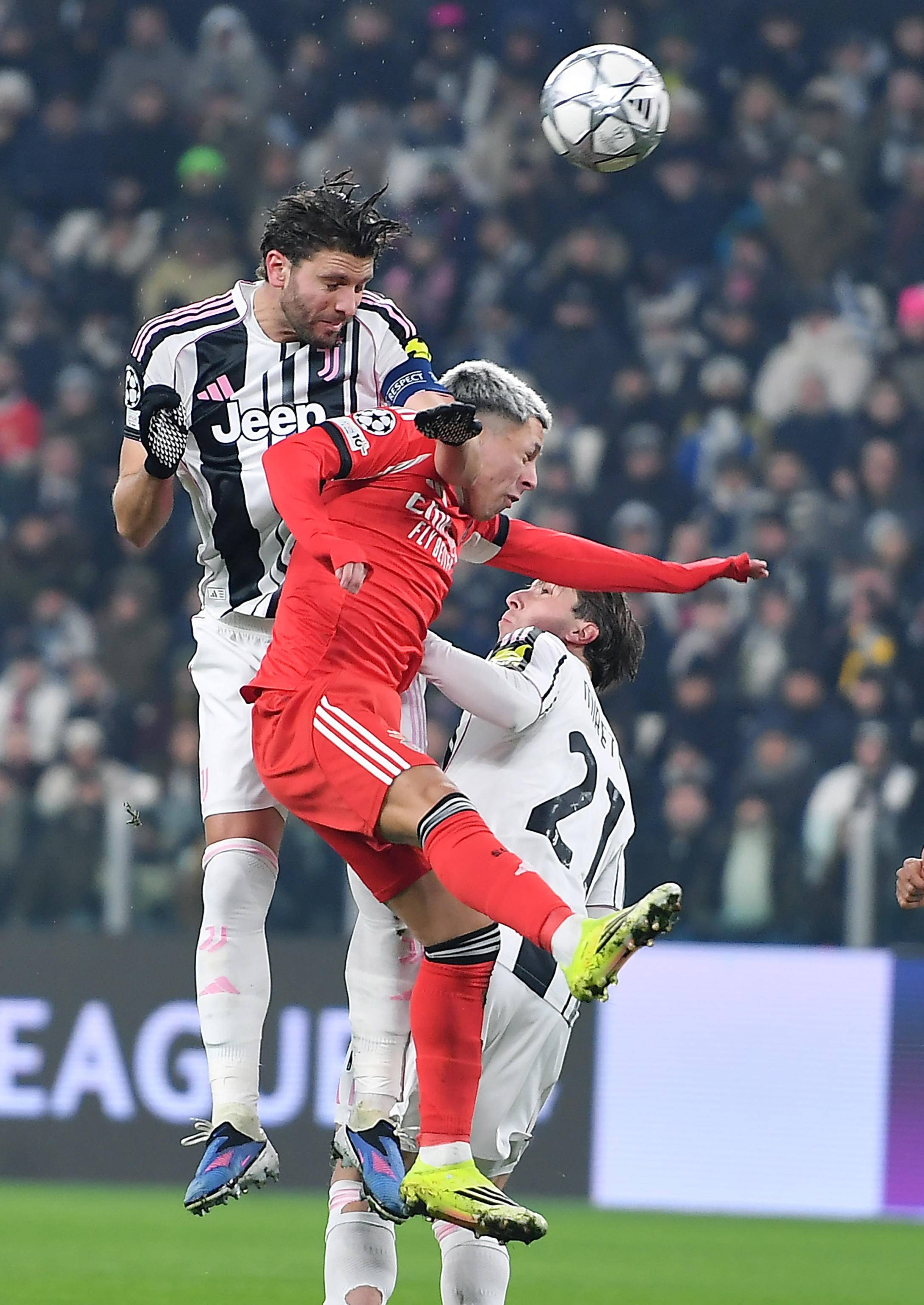 1月21日,尤文图斯队球员图拉姆(左)与本菲卡队球员巴雷罗拼抢。 新华社/欧新