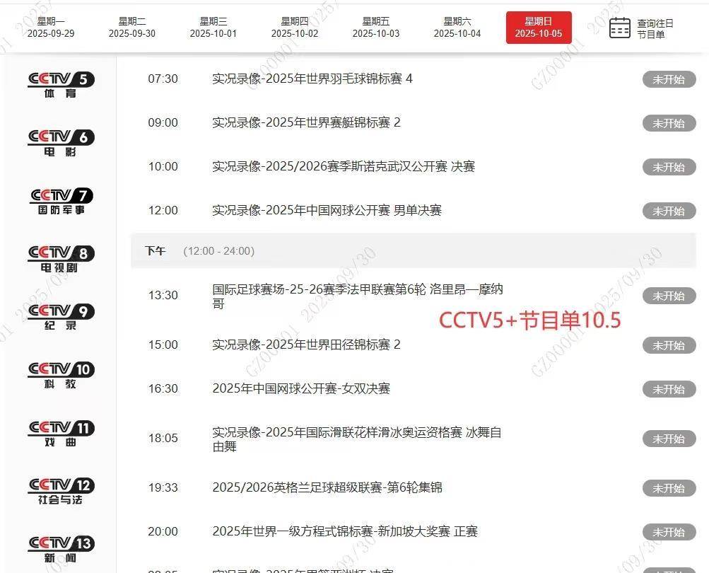 重要赛事!10月5号晚7点整CCTV5、CCTV5+5套直播精彩体育比赛直播_足球_波胆_买球_篮电竞_在线投注节目表