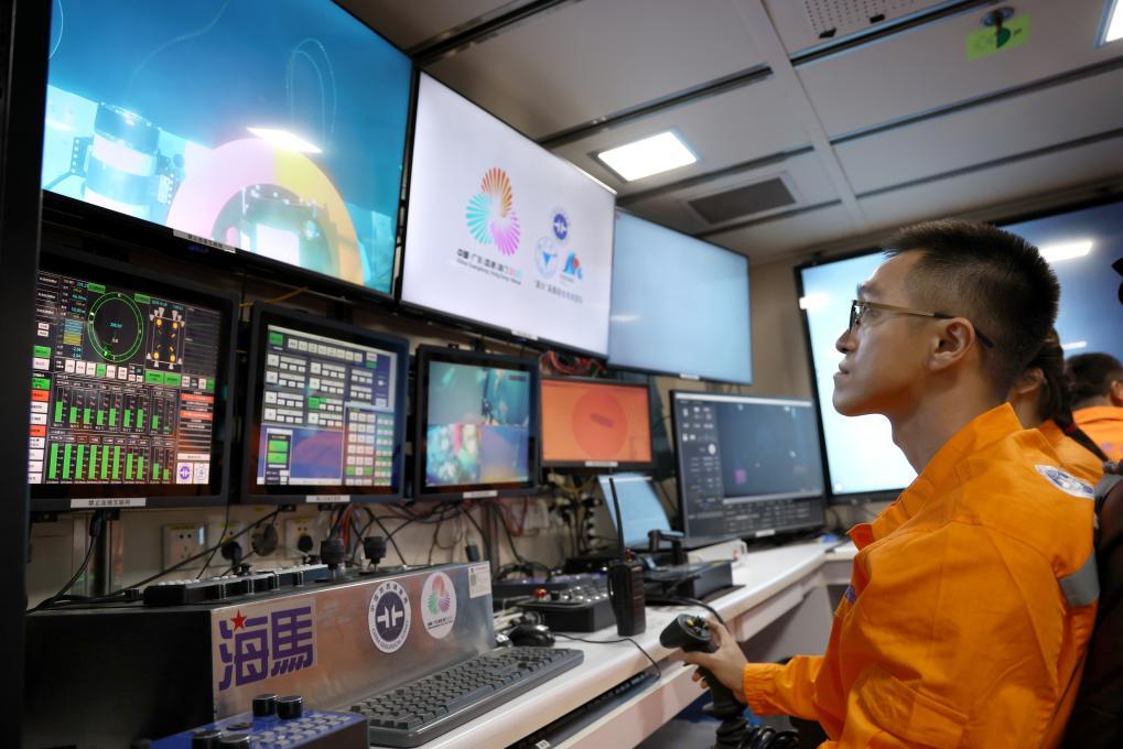 9月18日,“海洋地质二号”科考船搭载“海马”号深海遥控潜水器在南海北部进行“源火”采集。新华社记者 卢汉欣 摄