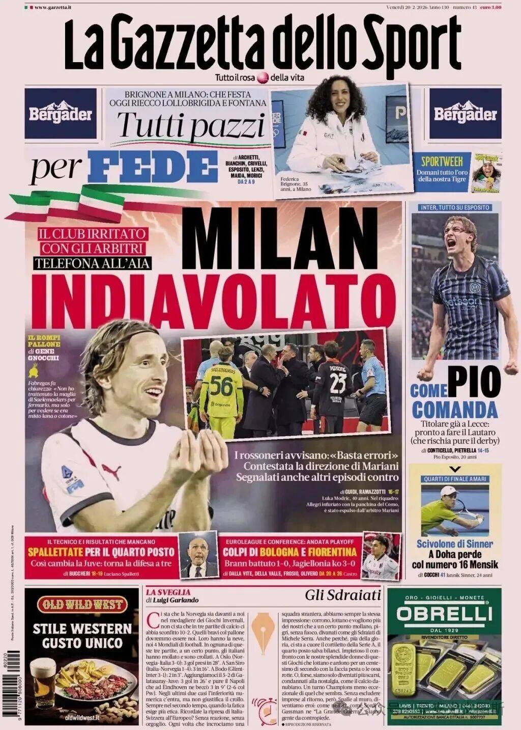 1. 米兰俱乐部对裁判们的判罚感到非常愤怒,并已致电意大利裁判委员会(AIA)。红黑军团发出警告:“不要再犯类似的错误。”他们对马里亚尼的判罚提出抗议,并暗示未来可能还会发生更多类似事件。