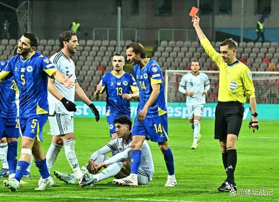 然而,并非所有的欧洲劲旅都能如愿以偿。四星意大利的遭遇,无疑是这个国际比赛日最令人唏嘘的篇章。在与波黑的附加赛决赛中,意大利队先是凭借基恩的进球取得领先,但随后巴斯托尼的红牌让球队陷入被动。尽管塔巴科维奇在下半场尾声阶段扳平比分,将比赛拖入加时,但最终意大利队还是在点球大战中败下阵来,以总比分5-2不敌波黑,再次无缘世界杯。值得一提的是,巴斯托尼的这张红牌,是他职业生涯中首次领到的直接红牌,也让他成为了自2016年基耶利尼之后,首位在世界杯预选赛中染红的意大利球员。自2014年小组出局后,意大利队已经连续三届世界杯无缘正赛,创造了前冠军球队的尴尬纪录。尽管他们在2020年欧洲杯上问鼎冠军,但在世界杯的舞台上,他们却屡屡受挫。
