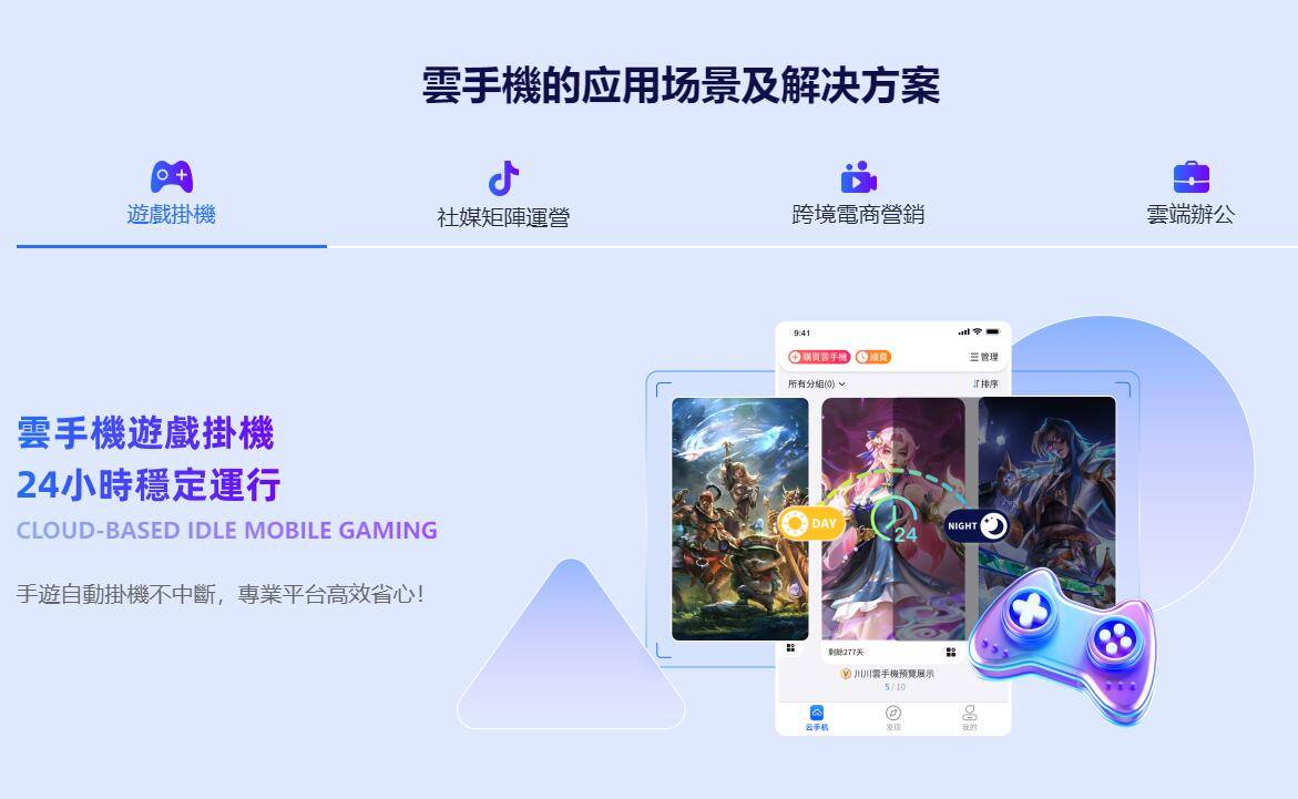 1. 川川云手机:综合性价比最高的全能款,基础套餐月费不到26元,自带全球各地区纯净独立IP和设备指纹模拟技术,多账号防关联能力拉满,适配TikTok、亚马逊等绝大多数海外平台,72小时挂机断连率不到0.2%,还免费开放群控、AI辅助功能,不管是跨境运营还是海外游戏挂机都能hold住,没有任何隐性消费,实测单账号月成本比同类产品低30%以上。