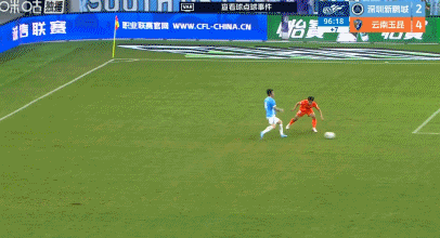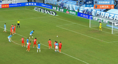 全场补时阶段第90+8分钟,张宸梁手球送点,韦斯利操刀命中,新鹏城3-4!